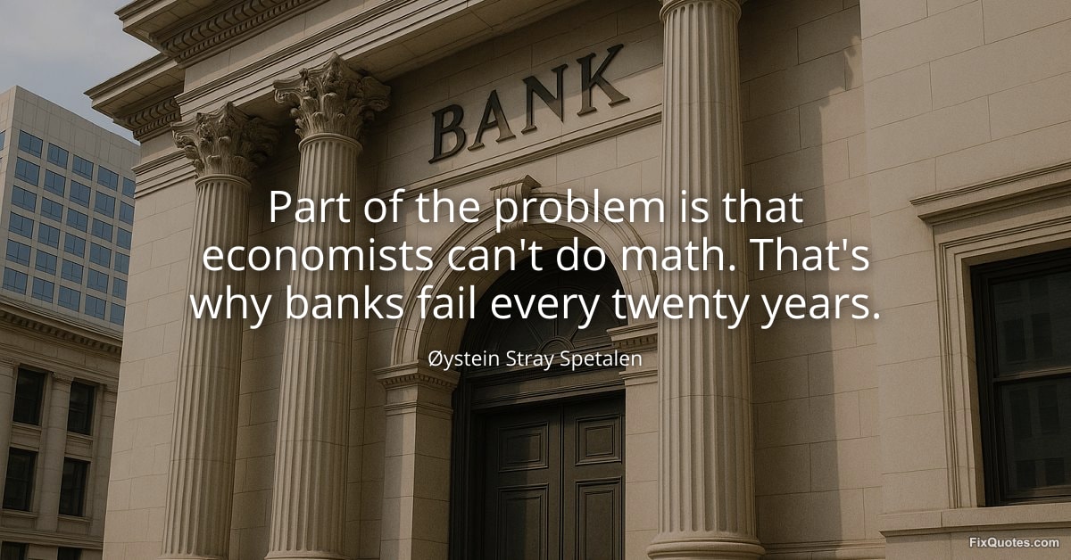 Spetalen, Øystein Stray. (2026, January 16). Part of the problem is that economists can't do math. That's why banks fail every twenty years. FixQuotes. https://fixquotes.com/quotes/part-of-the-problem-is-that-economists-cant-do-173113/