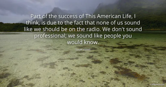 Vowell, Sarah. (2026, January 16). Part of the success of This American Life, I think, is due to the fact that none of us sound like we should be on the radio. We don't sound professional; we sound like people you would know. FixQuotes. https://fixquotes.com/quotes/part-of-the-success-of-this-american-life-i-think-130706/