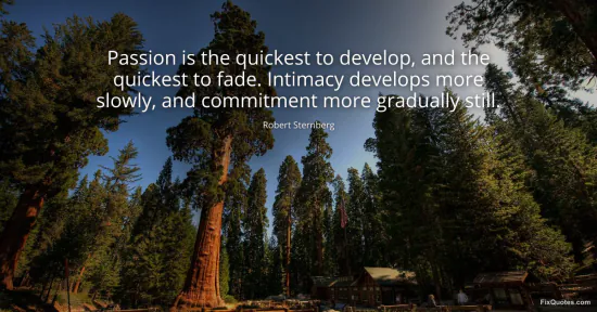 Sternberg, Robert. (2026, January 17). Passion is the quickest to develop, and the quickest to fade. Intimacy develops more slowly, and commitment more gradually still. FixQuotes. https://fixquotes.com/quotes/passion-is-the-quickest-to-develop-and-the-58175/
