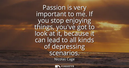 "Passion is very important to me. If you stop enjoying things, you've got to look at it, because it can lead to all kinds of depressing scenarios"