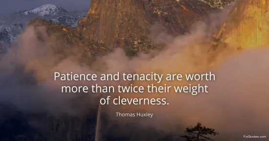 Huxley, Thomas. (2026, January 15). Patience and tenacity are worth more than twice their weight of cleverness. FixQuotes. https://fixquotes.com/quotes/patience-and-tenacity-are-worth-more-than-twice-83488/