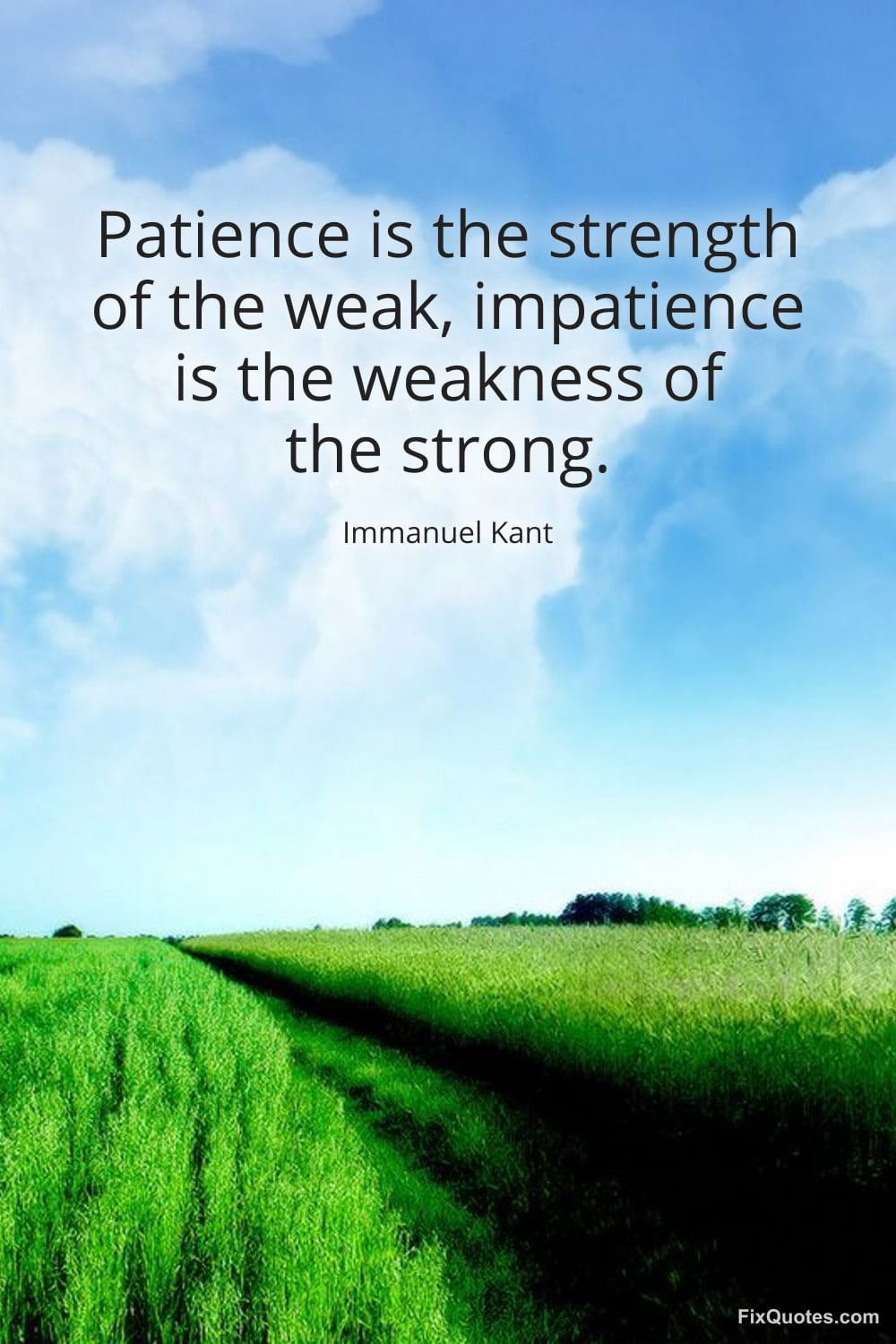 Kant, Immanuel. (2026, February 10). Patience is the strength of the weak, impatience is the weakness of the strong. FixQuotes. https://fixquotes.com/quotes/patience-is-the-strength-of-the-weak-impatience-185054/