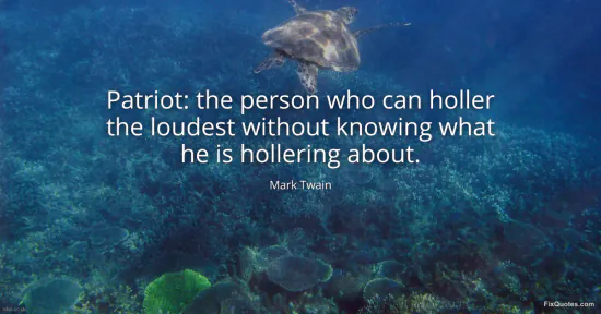 Twain, Mark. "Patriot: the person who can holler the loudest without knowing what he is hollering about." FixQuotes. January 18, 2026. https://fixquotes.com/quotes/patriot-the-person-who-can-holler-the-loudest-22242/.