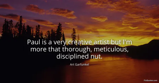 Garfunkel, Art. "Paul is a very creative artist but I'm more that thorough, meticulous, disciplined nut." FixQuotes. January 17, 2026. https://fixquotes.com/quotes/paul-is-a-very-creative-artist-but-im-more-that-42666/.