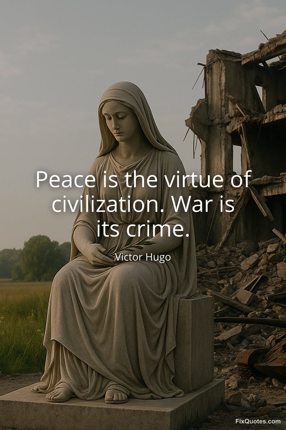 Hugo, Victor. (2026, January 11). Peace is the virtue of civilization. War is its crime. FixQuotes. https://fixquotes.com/quotes/peace-is-the-virtue-of-civilization-war-is-its-34889/