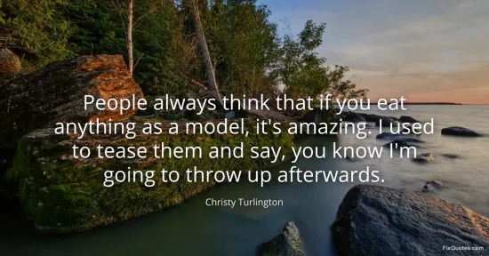 Turlington, Christy. "People always think that if you eat anything as a model, it's amazing. I used to tease them and say, you know I'm going to throw up afterwards." FixQuotes. January 16, 2026. https://fixquotes.com/quotes/people-always-think-that-if-you-eat-anything-as-a-139156/.