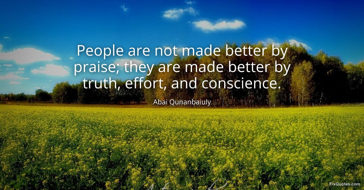 Qunanbaiuly, Abai. "People are not made better by praise; they are made better by truth, effort, and conscience." FixQuotes. February 14, 2026. https://fixquotes.com/quotes/people-are-not-made-better-by-praise-they-are-185306/.