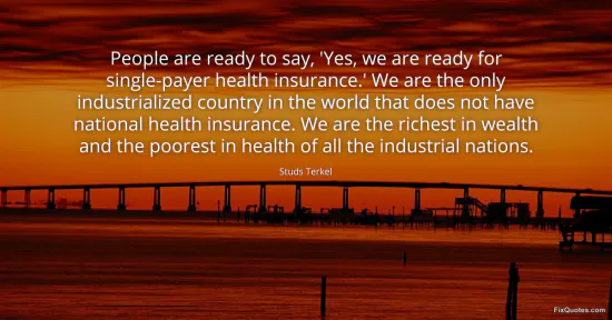 Terkel, Studs. (2026, January 15). People are ready to say, 'Yes, we are ready for single-payer health insurance.' We are the only industrialized country in the world that does not have national health insurance. We are the richest in wealth and the poorest in health of all the industrial nations. FixQuotes. https://fixquotes.com/quotes/people-are-ready-to-say-yes-we-are-ready-for-154873/
