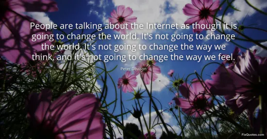 Davison, Peter. "People are talking about the Internet as though it is going to change the world. It's not going to change the world. It's not going to change the way we think, and it's not going to change the way we feel." FixQuotes. January 15, 2026. https://fixquotes.com/quotes/people-are-talking-about-the-internet-as-though-128676/.