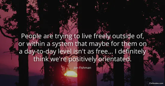 Fishman, Jon. (2026, January 17). People are trying to live freely outside of, or within a system that maybe for them on a day-to-day level isn't as free... I definitely think we're positively orientated. FixQuotes. https://fixquotes.com/quotes/people-are-trying-to-live-freely-outside-of-or-80449/