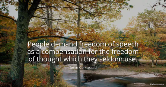 Kierkegaard, Søren. (2026, January 15). People demand freedom of speech as a compensation for the freedom of thought which they seldom use. FixQuotes. https://fixquotes.com/quotes/people-demand-freedom-of-speech-as-a-compensation-37710/