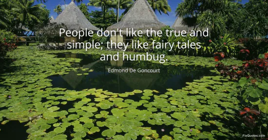 Goncourt lands the insult with a shrug of elegance: people claim to want honesty, but they shop for enchantment. “True and simple” sounds like virtue, yet he frames it as a hard sell - plain truth has no costume changes, no satisfying arc, no villain you can boo on schedule. “Fairy tales” aren’t just children’s stories here; they’re a whole cultural technology for making reality emotionally legible. “Humbug” sharpens the blade. It’s not innocent escapism but a willingness to be fooled, even a preference for the well-packaged lie over the awkward fact.