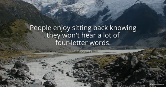 Conway, Tim. "People enjoy sitting back knowing they won't hear a lot of four-letter words." FixQuotes. January 16, 2026. https://fixquotes.com/quotes/people-enjoy-sitting-back-knowing-they-wont-hear-121914/.