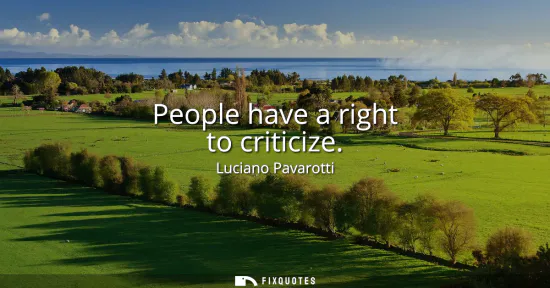 The statement by Luciano Pavarotti, “People have a right to criticize,” acknowledges an essential aspect of human interaction and a cornerstone of democratic societies. Criticism, when exercised thoughtfully, can be a powerful catalyst for growth, accountability, and self-improvement. By recognizing that everyone is entitled to voice their opinions and shortcomings they perceive, Pavarotti embraces the idea that feedback, whether positive or negative, plays a crucial role in shaping individuals, communities, and even art forms.