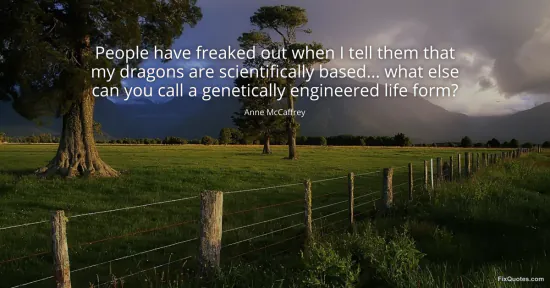 McCaffrey, Anne. (2026, January 16). People have freaked out when I tell them that my dragons are scientifically based... what else can you call a genetically engineered life form? FixQuotes. https://fixquotes.com/quotes/people-have-freaked-out-when-i-tell-them-that-my-138355/