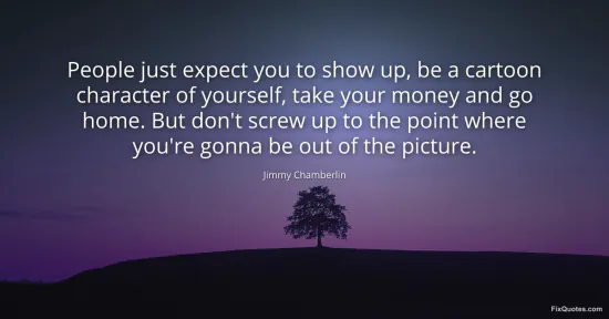Chamberlin, Jimmy. (2026, January 16). People just expect you to show up, be a cartoon character of yourself, take your money and go home. But don't screw up to the point where you're gonna be out of the picture. FixQuotes. https://fixquotes.com/quotes/people-just-expect-you-to-show-up-be-a-cartoon-97922/