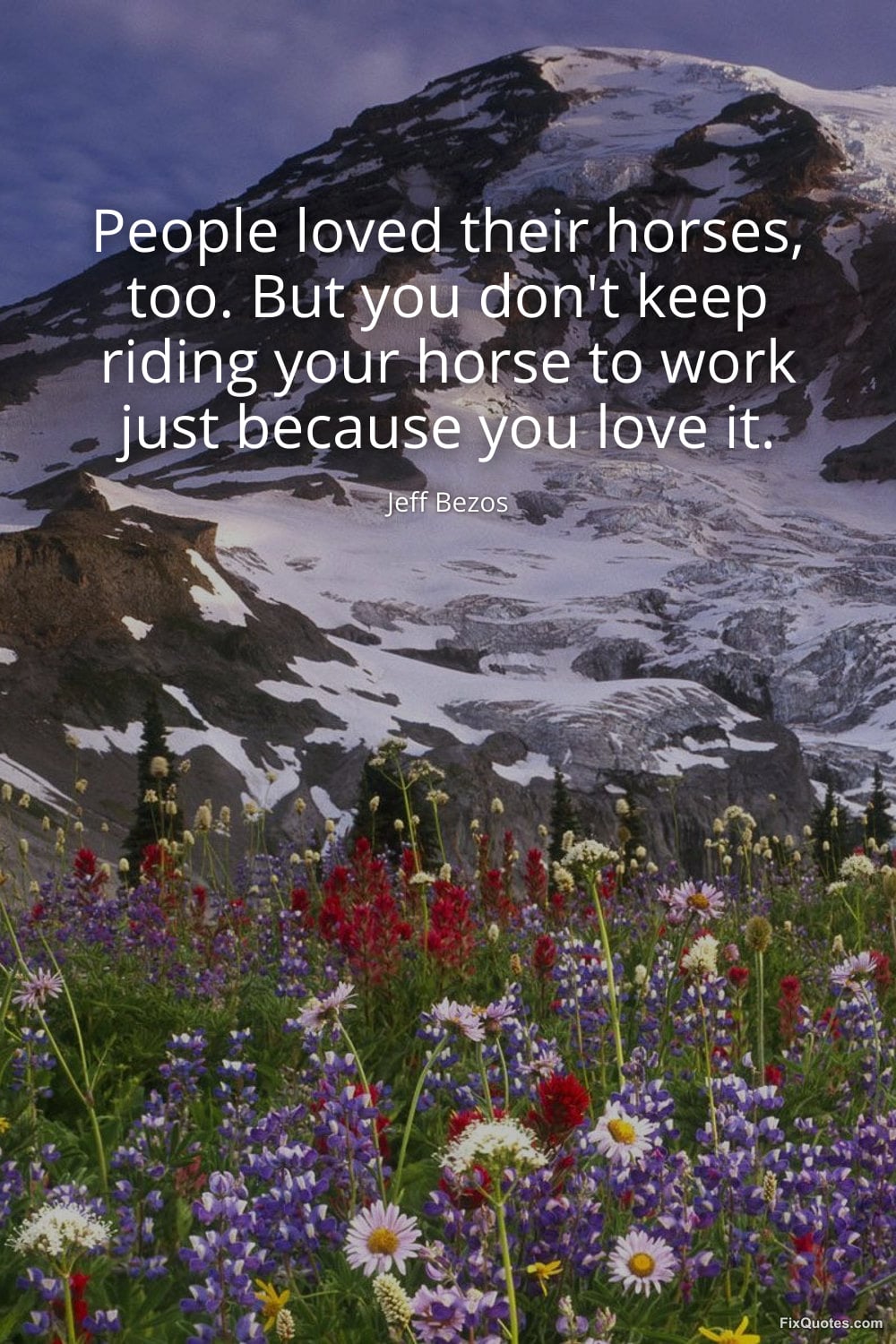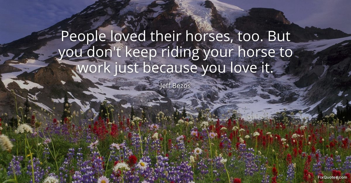 Bezos, Jeff. (2026, March 25). People loved their horses, too. But you don't keep riding your horse to work just because you love it. FixQuotes. https://fixquotes.com/quotes/people-loved-their-horses-too-but-you-dont-keep-186356/