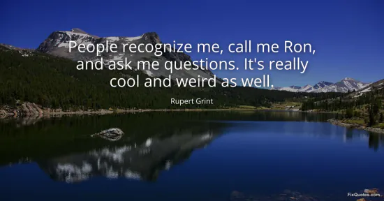 Grint, Rupert. "People recognize me, call me Ron, and ask me questions. It's really cool and weird as well." FixQuotes. January 16, 2026. https://fixquotes.com/quotes/people-recognize-me-call-me-ron-and-ask-me-122580/.