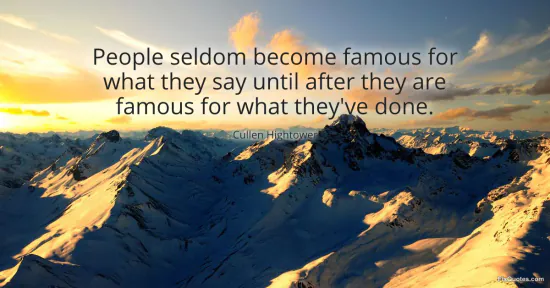 Hightower, Cullen. (2026, January 17). People seldom become famous for what they say until after they are famous for what they've done. FixQuotes. https://fixquotes.com/quotes/people-seldom-become-famous-for-what-they-say-81187/