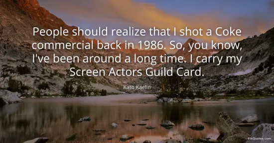 Kaelin, Kato. "People should realize that I shot a Coke commercial back in 1986. So, you know, I've been around a long time. I carry my Screen Actors Guild Card." FixQuotes. January 18, 2026. https://fixquotes.com/quotes/people-should-realize-that-i-shot-a-coke-4586/.