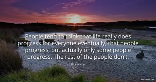 Walker, Alice. (2026, January 17). People tend to think that life really does progress for everyone eventually, that people progress, but actually only some people progress. The rest of the people don't. FixQuotes. https://fixquotes.com/quotes/people-tend-to-think-that-life-really-does-35350/