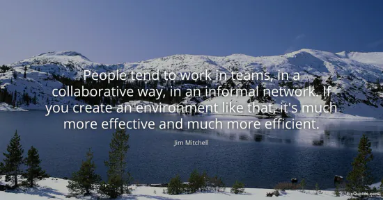 Mitchell, Jim. (2026, January 17). People tend to work in teams, in a collaborative way, in an informal network. If you create an environment like that, it's much more effective and much more efficient. FixQuotes. https://fixquotes.com/quotes/people-tend-to-work-in-teams-in-a-collaborative-52072/