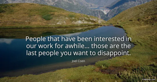 Coen, Joel. "People that have been interested in our work for awhile... those are the last people you want to disappoint." FixQuotes. January 15, 2026. https://fixquotes.com/quotes/people-that-have-been-interested-in-our-work-for-143087/.
