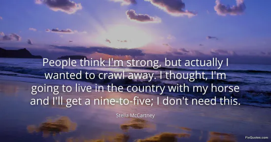 McCartney, Stella. "People think I'm strong, but actually I wanted to crawl away. I thought, I'm going to live in the country with my horse and I'll get a nine-to-five; I don't need this." FixQuotes. January 16, 2026. https://fixquotes.com/quotes/people-think-im-strong-but-actually-i-wanted-to-102666/.