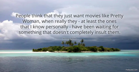 Ryder, Winona. "People think that they just want movies like Pretty Woman, when really they - at least the ones that I know personally - have been waiting for something that doesn't completely insult them." FixQuotes. January 16, 2026. https://fixquotes.com/quotes/people-think-that-they-just-want-movies-like-90360/.