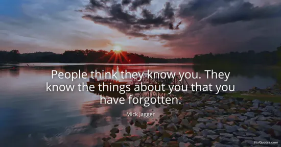 Jagger, Mick. (2026, January 15). People think they know you. They know the things about you that you have forgotten. FixQuotes. https://fixquotes.com/quotes/people-think-they-know-you-they-know-the-things-143241/
