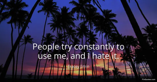 Emin, Tracey. "People try constantly to use me, and I hate it." FixQuotes. January 17, 2026. https://fixquotes.com/quotes/people-try-constantly-to-use-me-and-i-hate-it-78708/.