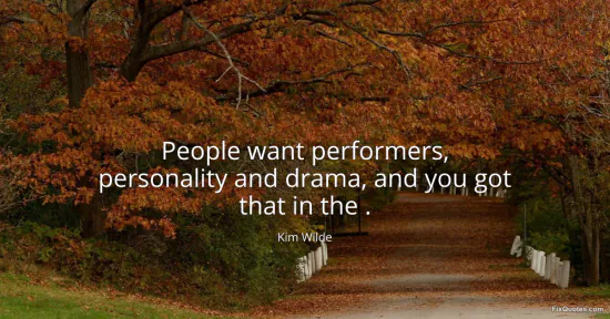 Wilde, Kim. (2026, January 17). People want performers, personality and drama, and you got that in the . FixQuotes. https://fixquotes.com/quotes/people-want-performers-personality-and-drama-and-48747/