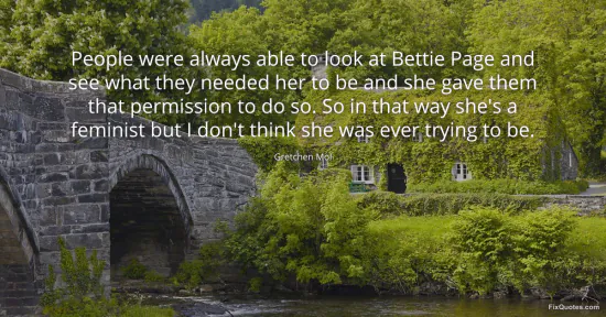 Mol, Gretchen. "People were always able to look at Bettie Page and see what they needed her to be and she gave them that permission to do so. So in that way she's a feminist but I don't think she was ever trying to be." FixQuotes. January 16, 2026. https://fixquotes.com/quotes/people-were-always-able-to-look-at-bettie-page-123364/.