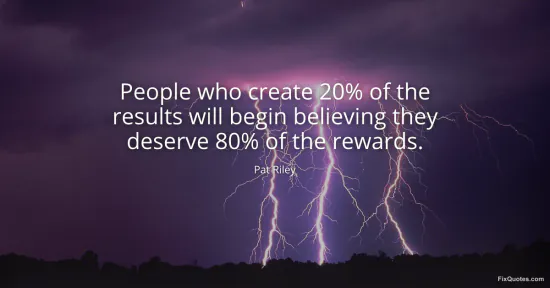 Riley, Pat. "People who create 20% of the results will begin believing they deserve 80% of the rewards." FixQuotes. January 15, 2026. https://fixquotes.com/quotes/people-who-create-20-of-the-results-will-begin-164361/.