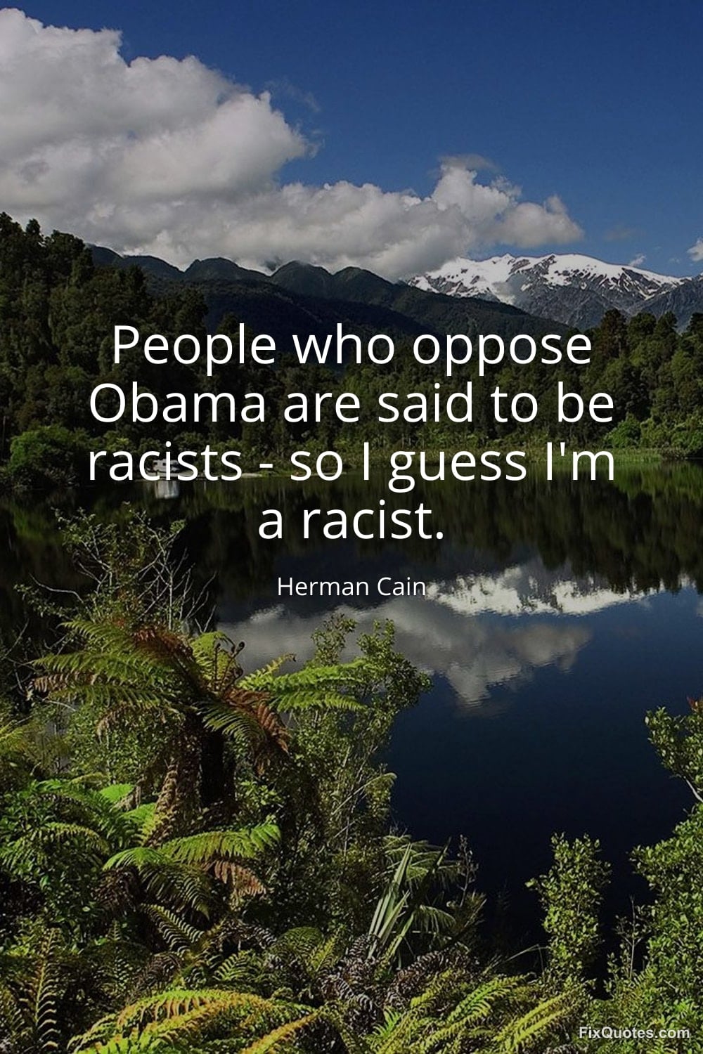 Cain, Herman. "People who oppose Obama are said to be racists - so I guess I'm a racist." FixQuotes. January 18, 2026. https://fixquotes.com/quotes/people-who-oppose-obama-are-said-to-be-racists-20001/.