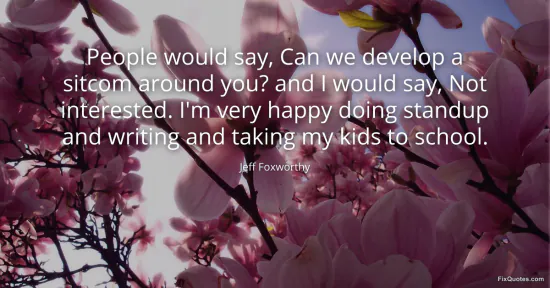 Foxworthy, Jeff. (2026, January 16). People would say, Can we develop a sitcom around you? and I would say, Not interested. I'm very happy doing standup and writing and taking my kids to school. FixQuotes. https://fixquotes.com/quotes/people-would-say-can-we-develop-a-sitcom-around-137528/
