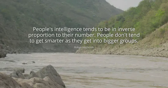 Hitchcock, Robyn. (2026, January 16). People's intelligence tends to be in inverse proportion to their number. People don't tend to get smarter as they get into bigger groups. FixQuotes. https://fixquotes.com/quotes/peoples-intelligence-tends-to-be-in-inverse-102815/