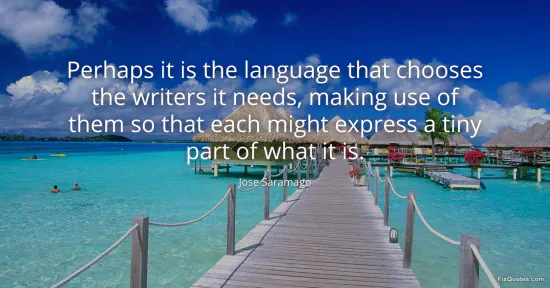 Saramago, Jose. (2026, January 17). Perhaps it is the language that chooses the writers it needs, making use of them so that each might express a tiny part of what it is. FixQuotes. https://fixquotes.com/quotes/perhaps-it-is-the-language-that-chooses-the-55215/