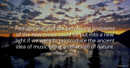 Crumb, George. (2026, January 17). Perhaps many of the perplexing problems of the new music could be put into a new light if we were to reintroduce the ancient idea of music being a reflection of nature. FixQuotes. https://fixquotes.com/quotes/perhaps-many-of-the-perplexing-problems-of-the-53462/