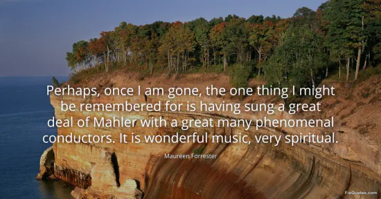 Forrester, Maureen. "Perhaps, once I am gone, the one thing I might be remembered for is having sung a great deal of Mahler with a great many phenomenal conductors. It is wonderful music, very spiritual." FixQuotes. January 16, 2026. https://fixquotes.com/quotes/perhaps-once-i-am-gone-the-one-thing-i-might-be-104426/.