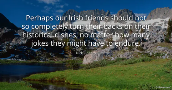 Clooney, Nick. "Perhaps our Irish friends should not so completely turn their backs on their historical dishes, no matter how many jokes they might have to endure." FixQuotes. January 15, 2026. https://fixquotes.com/quotes/perhaps-our-irish-friends-should-not-so-153909/.