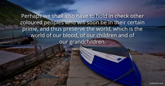 "Perhaps we shall also have to hold in check other coloured peoples who will soon be in their certain prime, and thus preserve the world, which is the world of our blood, of our children and of our grandchildren"