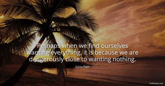 Plath, Sylvia. (2026, January 16). Perhaps when we find ourselves wanting everything, it is because we are dangerously close to wanting nothing. FixQuotes. https://fixquotes.com/quotes/perhaps-when-we-find-ourselves-wanting-everything-84586/