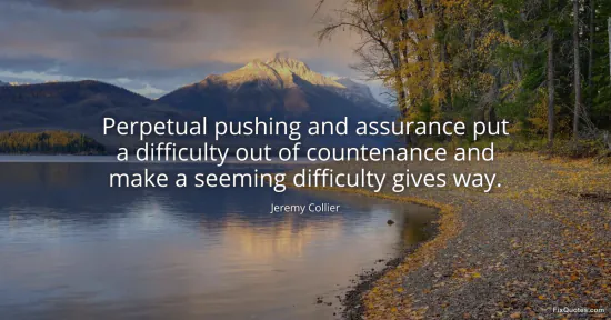Collier, Jeremy. (2026, January 16). Perpetual pushing and assurance put a difficulty out of countenance and make a seeming difficulty gives way. FixQuotes. https://fixquotes.com/quotes/perpetual-pushing-and-assurance-put-a-difficulty-110623/