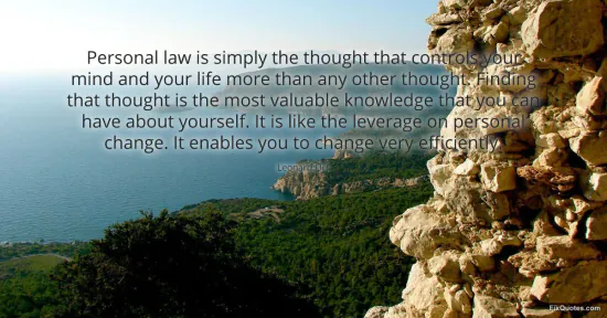 "Personal law is simply the thought that controls your mind and your life more than any other thought. Finding that thought is the most valuable knowledge that you can have about yourself. It is like the leverage on personal change. It enables you to change very efficiently"
