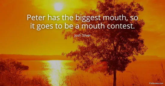 Silver, Josh. "Peter has the biggest mouth, so it goes to be a mouth contest." FixQuotes. January 15, 2026. https://fixquotes.com/quotes/peter-has-the-biggest-mouth-so-it-goes-to-be-a-148798/.