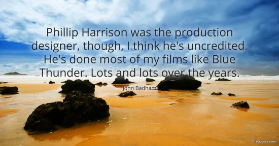 Badham, John. (2026, January 18). Phillip Harrison was the production designer, though, I think he's uncredited. He's done most of my films like Blue Thunder. Lots and lots over the years. FixQuotes. https://fixquotes.com/quotes/phillip-harrison-was-the-production-designer-17608/