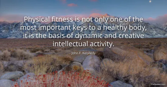 Kennedy, John F. (2026, January 17). Physical fitness is not only one of the most important keys to a healthy body, it is the basis of dynamic and creative intellectual activity. FixQuotes. https://fixquotes.com/quotes/physical-fitness-is-not-only-one-of-the-most-25933/