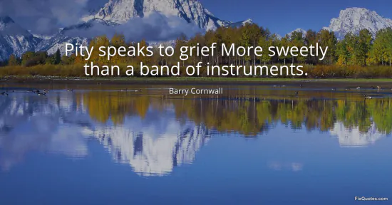 Cornwall, Barry. (2026, January 16). Pity speaks to grief More sweetly than a band of instruments. FixQuotes. https://fixquotes.com/quotes/pity-speaks-to-grief-more-sweetly-than-a-band-of-108532/