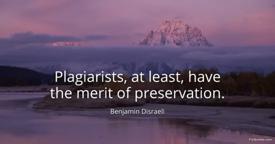 Disraeli, Benjamin. (2026, January 18). Plagiarists, at least, have the merit of preservation. FixQuotes. https://fixquotes.com/quotes/plagiarists-at-least-have-the-merit-of-4667/